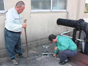 ![]() 平成24年10月21日 活動区分:基礎活動、実践活動 施設又はテーマ:水路 活動項目:用水機場コンクリート斫り 備考:土の流失による空洞化 |