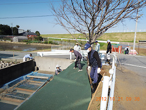 ![]() 平成24年10月21日 活動区分:基礎活動、実践活動 施設又はテーマ:水路 活動項目:防草シート敷設 |