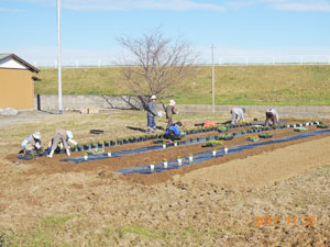 平成29年7月9日 全体打合せ、土嚢つくり、ひまわり